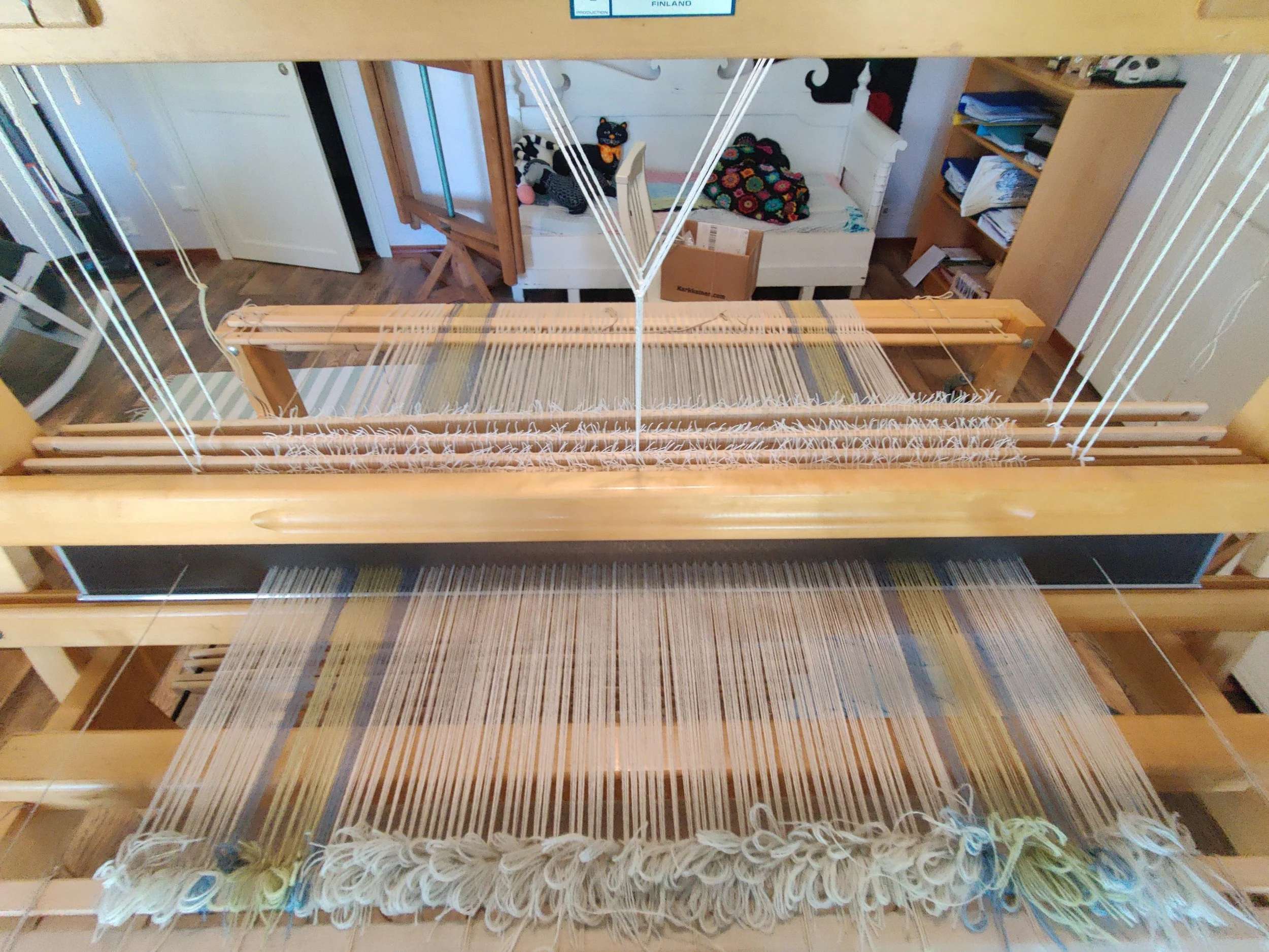 Keväällä ja syksyn mittaan suoritin käsityöalan koulutusta, kudonnan osa-aluetta, johon kuului paljon kotona suoritettavaa työtä. Tai no, sen olisi voinut suorittaa koulussakin, mutta minulle oli helpompaa tehdä osa tehtävistä kotona. Varsinkin kun minulla on siihen tarvittavat välineet. Syksyllä sain sitten ne opinnot valmiiksi, mutta….