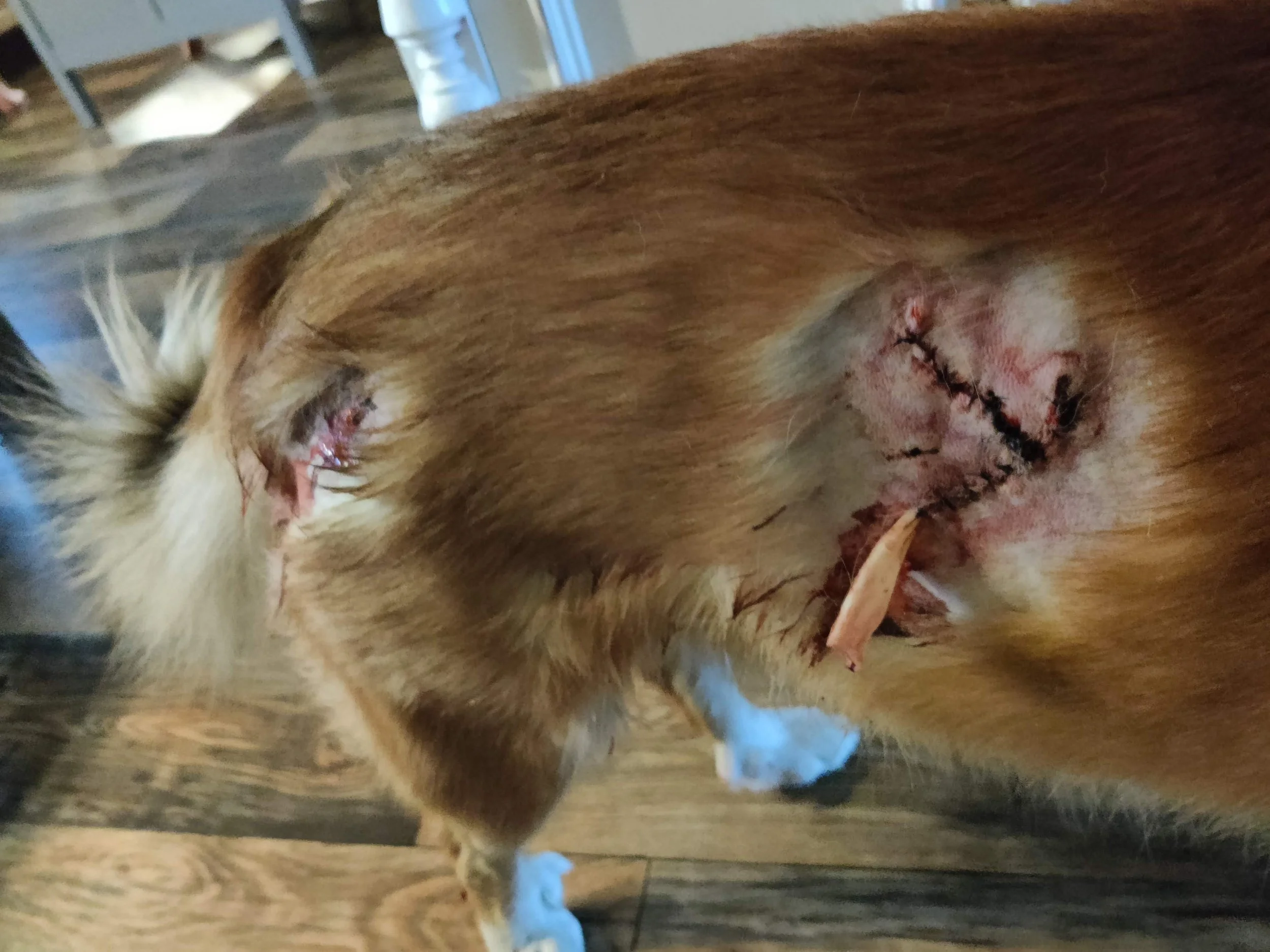 Aamuyöllä, viiden aikoihin, miehet tulivat Morin kanssa kotiin ja Ismo kertoi eläinlääkärin olleen aivan varma hyökkääjän olleen susi. Syvä puremajälki persuksissa ja kyljestä pala pois.