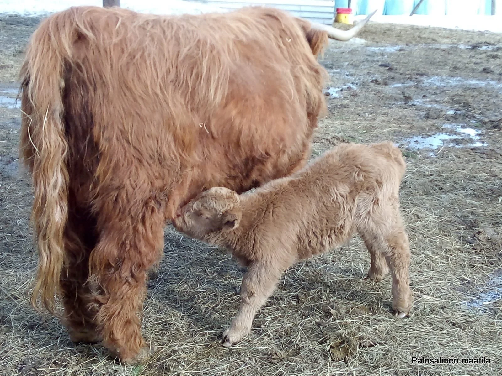Vasikoita on syntynyt maalis-huhtikuussa kokonaiset seitsemän kappaletta. Poikimiset on olleet helppoja, mutta erilaistahan se on ollut entisiin navetassa hoidettuihin poikimisiin verrattuna. Yötä myöden on kuljettu taskulampun kanssa pitkin tarhoja varmistamassa, että poikimiset sujuu. Vain yhtä poikimista jouduttiin auttaa, muuten emot suoriutuivat ihan omatoimisesti.